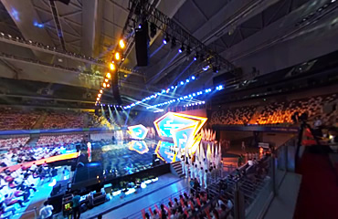 虚拟现实与直播的结合, 采用360度全景的拍摄设备,以捕捉超清晰、多角度的画面,每一帧画面都是一个360度的全景,观看者还能选择上下左右任意角度,体验更逼真的沉浸感,也可选择直播或者录播。